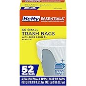 Hefty Essentials Flap Tie 4 Gallon Trash Bags, 52 Count, Small Scented Trash Bags for Bathrooms, Bedrooms, Dorm Rooms, Home Offices, and More, Fresh Linen Scent, White